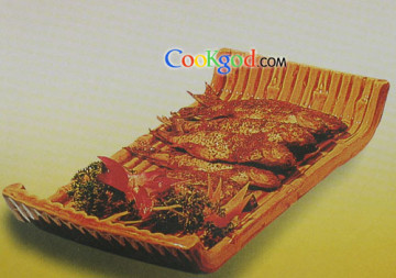石斑鱼肉质细嫩,营养丰富。葱烤石斑鱼是在吸取西部地区烧烤烹饪的基础上,创新的安徽特色菜肴。成菜鱼肉细腻,麻辣酥香,葱味浓郁,色泽金黄,既可供筵席配餐,又可当小吃爽口。主料石斑鱼辅料葱节调料精盐 味精 白糖 料酒 老抽 陈醋 姜 葱 胡椒粉 辣椒粉 麻油