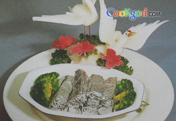 锡包银鳕鱼系以深海鳕鱼成菜,其营养价值高,口感鲜嫩,肉细无刺,油润芳香,深受公众欢迎。主料鳕鱼肉辅料锡纸调料精盐 味精 胡椒粉 姜葱汁 生油