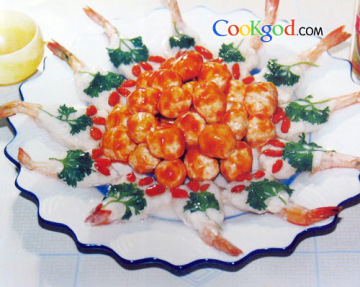 相关菜谱名称推荐:鱼虾争艳,鱼虾争艳,菊花争艳,荷花金鱼虾