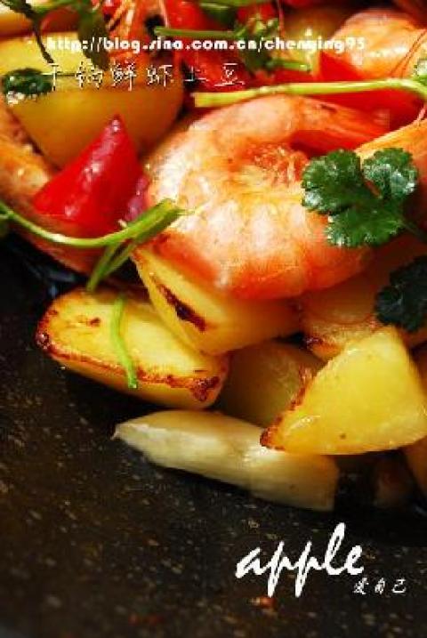 第一种:海鲜菜谱干锅鲜虾土豆做法