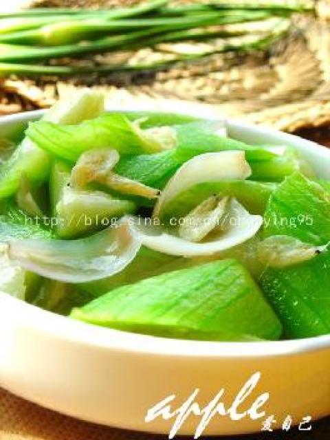 第一种:海鲜菜谱丝瓜百合虾皮做法