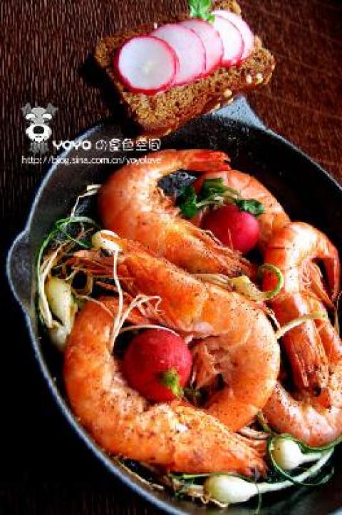 小野蒜一把,黑胡椒适量,虾几只