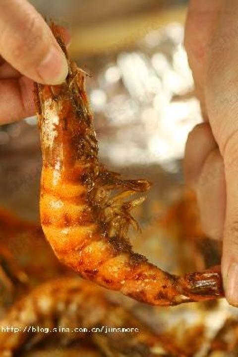 3、虾不要烤太久,烤过头虾肉会干缩。