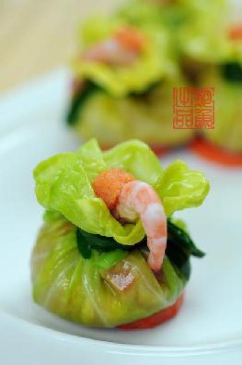 第一种:海鲜菜谱北极虾鲜蔬包做法