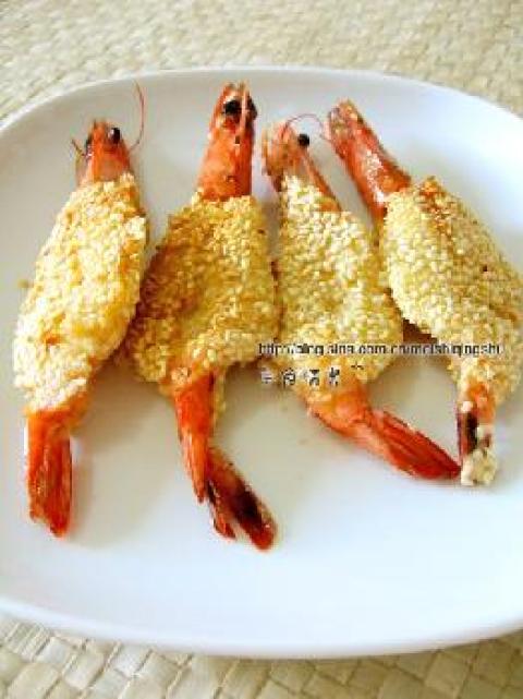 虾,芝麻,鸡蛋,面粉,盐,料酒