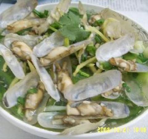 因为是第一次弄蛏子,所以分量用得很少.但味道还是很鲜美.呵呵.肉质比花蛤更嫩滑.吃完蛏子没把汤给倒了,那才是最鲜甜的.不过要趁热喝.来一口不?