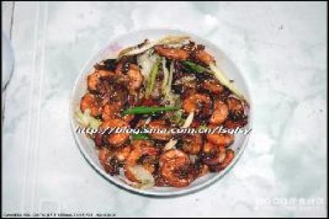 虾入锅煸炒,点入料酒,鸡精,盐,收干后出锅