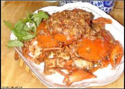 1.先将膏蟹洗净切块(注意,必须在未松绑之前斩断其大螯,以防被害),蘸上少许干淀粉,用小火油(花椒油)煎至7分熟,然后放入葱姜,烹上料酒,适量水和调味料,加盖焖3到5分钟至汤干出锅待用。