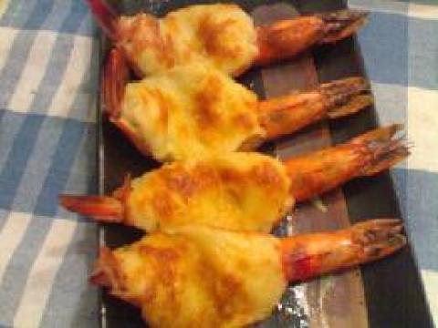 第一种:海鲜菜谱黑胡椒奶酪焗虾做法