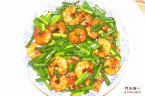 第一种:海鲜菜谱虾球韭苔做法