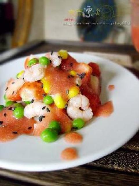 第二种:海鲜菜谱五彩缤纷-----莓汁虾仁做法