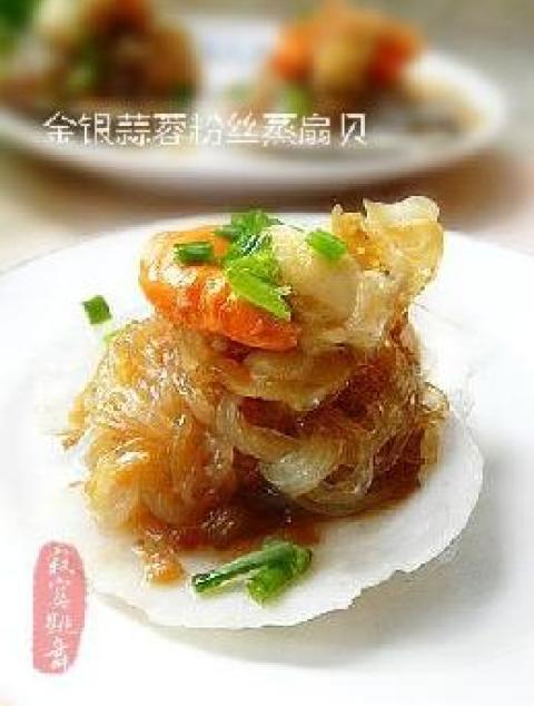 第一种:海鲜菜谱金银蒜蓉粉丝蒸扇贝做法