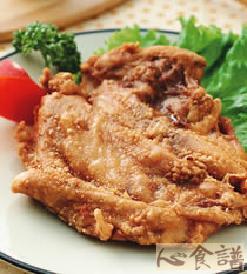 5.热油锅,待油温烧热至150℃时放入作法4的鸡排炸约2分钟,至鸡排表皮酥脆且呈现金黄色时即捞起、沥油。