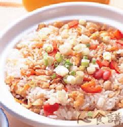 第一种:海鲜菜谱虾米菜脯煲饭做法