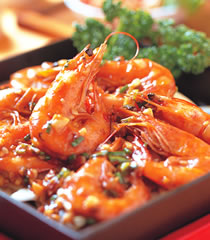 干烧草虾、沙茶葱姜蟹、果律虾球。
