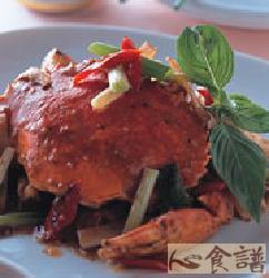 3、炒锅用武火烧热,下猪油,烧至六成热,即下葱头块,炒翻后,把葱头捞出,将油过滤。在锅内留底油,上灶,爆炒姜丝、蒜泥和炸过的葱头,待出香味时,下蟹块(盖)炒匀,依次炝料酒,加汤、精盐、白糖、酱油、味精等,加盖略炒,至锅内水分将干时,下猪油、香油、胡椒粉等炒匀,用湿淀粉勾芡,便可出锅。