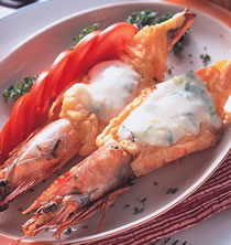第四种:海鲜菜谱奶油乳酪汁煎大明虾裹虾酱做法