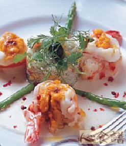 第一种:海鲜菜谱奶油乳酪汁煎大明虾裹虾酱做法