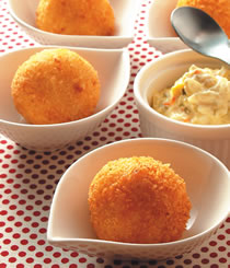 5、炸好的可乐饼可以配番茄沙司或者蛋黄酱实用,非常美味。