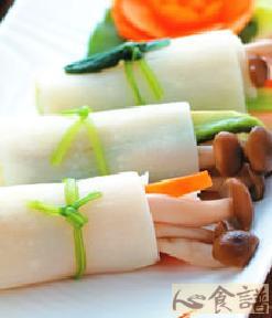 第一种:海鲜菜谱鲜虾春笋蔬果捲做法