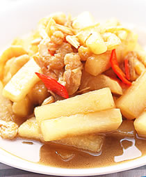 第三种:海鲜菜谱虾米菜脯煲饭做法