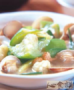 第一种:海鲜菜谱蛤蛎丝瓜做法