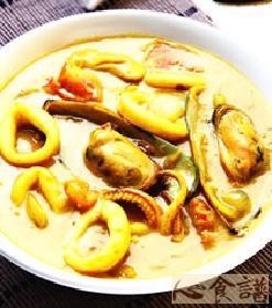 第一种:海鲜菜谱椰汁咖哩海鲜锅做法