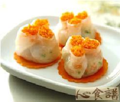 玉米鲜虾丸、杏片香虾筒、鲜虾腐皮卷、蟹肉小笼包、蟹黄晶烧卖