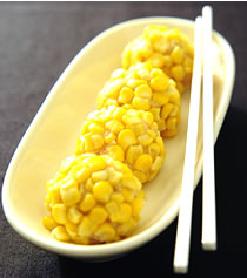 (3)将作法(1)完成的馅料,分成12份,每份约30公克,用手塑成圆球状裹上玉米粒,轻轻压紧,依序完成12份,放入蒸笼用大火蒸10分钟即成。