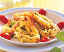 草虾6只,新鲜罗勒叶8片,低筋面粉120公克,鸡蛋2个,泡打粉1小匙,盐适量