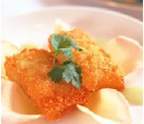 3. 外层包裹面粉,油炸至熟即可盛盘。可沾薄荷酱食用。