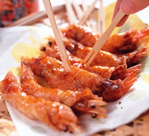 炸凤尾虾、虾球、卤海鲜、柠檬鱼