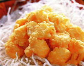 1肉苁蓉加少许水,入锅煮20分钟,沥出汁水。鸡蛋入碗打成液状。生姜取汁。2汁水中加入150克面粉、蛋液、姜汁、葱花、精盐、发酵粉,搅拌成蛋粉糊,虾仁加酒、盐、味精略渍,拌入于糊中。3菜油入锅,烧至四成熟时,用小汤匙舀起虾仁糊,入油锅炸至金黄色即可起锅装盘。
