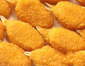 1.蟹螯用刀背敲去外壳留尾,沾上鱼浆再沾裹面包粉搓成圆型。