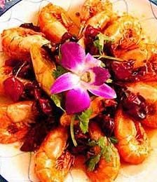 软炸虾糕、松子河虾仁、虾肉鸳鸯菜、什锦海参、乳酪蒸虾仁