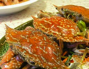 第一种:海鲜菜谱姜葱焗花蟹做法