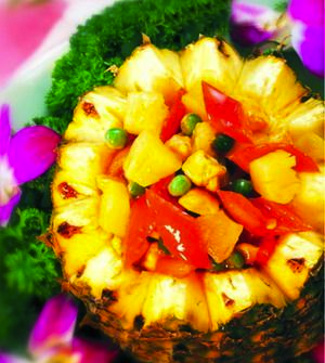 第一种:海鲜菜谱菠萝红虾球做法