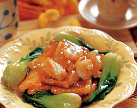 九月香辣河蟹、煎烹大虾、五彩缤纷虾仁、五彩虾仁