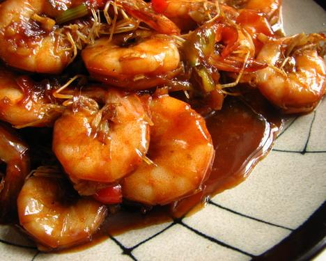 汁不要烧干了,否则虾就不好吃了,吃时蘸点浓汁才好吃。