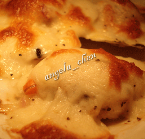 主辅料:扇贝,白酱,盐,黑胡椒,芝士。