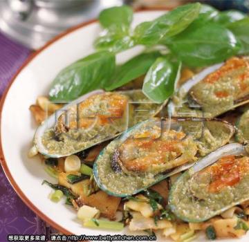 食材:青口贝600g,南姜50g,香茅2支,小洋葱2个,柠檬叶2片,金不换(罗勒)10g,调料:蚝油1茶匙(5ml),盐2茶匙(10g),油1汤匙(15ml)