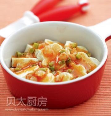 第一种:海鲜菜谱鲜虾蒸豆腐做法