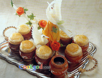 第一种:海鲜菜谱藻香酥皮海参盅做法