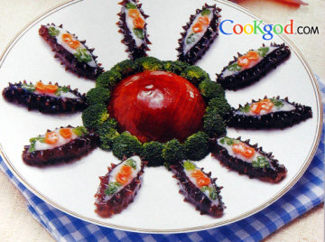 第一种:海鲜菜谱扒千层怀胎海参做法