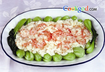 蛋清260克,牛奶100克,菜芯100克,虾仁150克。调料盐3克,味精3克,湿淀粉10克,色拉油500克。