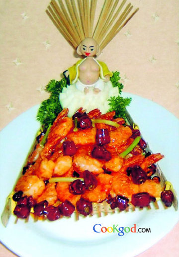 第一种:海鲜菜谱辣子鸿运虾做法