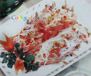 第一种:海鲜菜谱银丝顺风虾做法