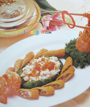 用料主料:澳州龙虾1只(约800克)、水发血燕窝100克配料:鲜虾仁200克、嫩西芹50克、熟肥瘦火腿50克、糯米纸4张、面包糠400克(约耗50克)、西兰花150克调料:精盐4克、鸡精4克、白糖5克、胡椒末少许、葱油6克、全蛋淀粉40克、全蛋液1个、鲜汤40克、花雕酒4克、蛋清淀粉30克、湿淀粉15克、细葱白末15克、精炼油1000克(约耗150克)