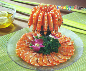 1、烧沸水,放虾灼至刚熟捞起装入蝶内。