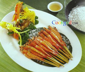 第一种:海鲜菜谱荷香盐焗串虾做法